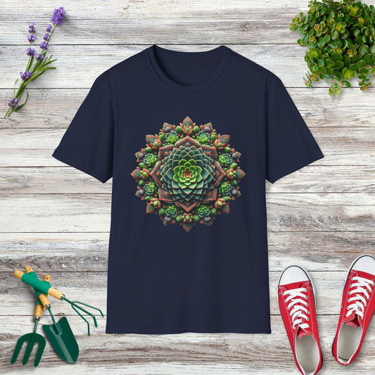 Succulent Plant Mandala Pattern T-Shirt